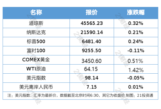 纽约股市三大股指8月27日上涨。截至当天收盘,道琼斯工业平均指数比前一交易日上涨147.16点,收于45565.23点,涨幅为0.32%;标准普尔500种股票指数上涨15.46点,收于6481.40点,涨幅为0.24%;纳斯达克综合指数上涨45.87点,收于21590.14点,涨幅为0.21%。